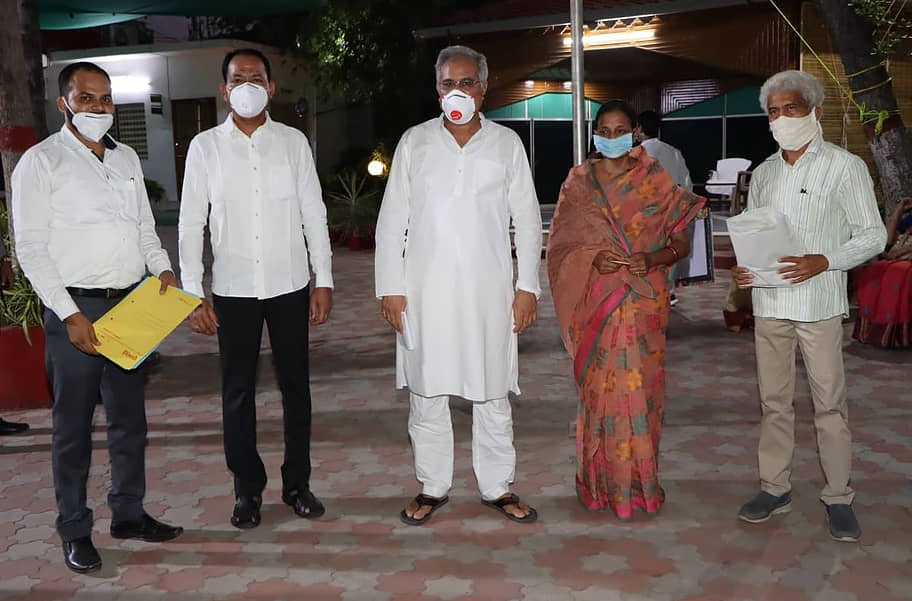 छत्तीसगढ़ के मुख्यमंत्री माननीय भूपेश बघेल जी को मानव तीर्थ संस्था (द्वारा गांधी विद्या मंदिर) के तरफ से सुश्री डॉ शारदा शर्मा ( अम्बा दीदी), साधन भट्टाचार्य जी, राजेन्द्र वर्मा जी और अवधेश पटेल जी, बेमेतरा ने रोगप्रतिरोधी आयुर्वेदिक औषधि सर्वज्वरहर चूर्ण भेंट किये।