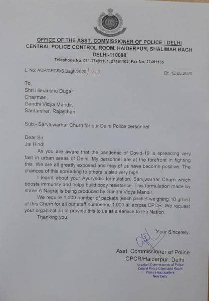 Request letter from Delhi police